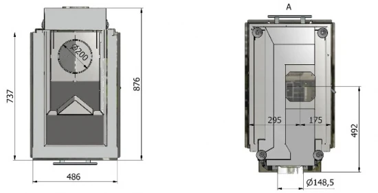 Der Rauchrohranschluss hat einen Durchmesser von 200 mm. Außerdem ist ein Anschluss für die externe Verbrennungsluft vorhanden (Durchmesser 150 mm). Der HAJDUK VOLCANO 3PLU h ist Bauart 2, kann auf Wunsch aber auch mit Bauart 1 geliefert werden.