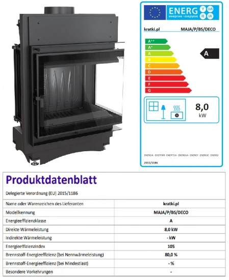Eck-Kamineinsatz Kratki MAJA/P/BS/DECO mit Seitenglas rechts – 8kW