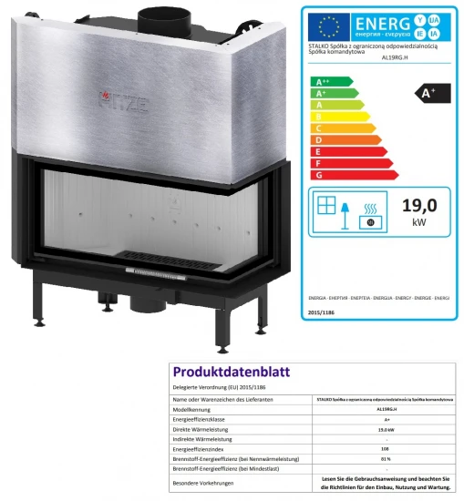 QUALITÄTSKAMINEINSATZ MIT HEBETÜR HITZE ALBERO AL19RG.H DECO