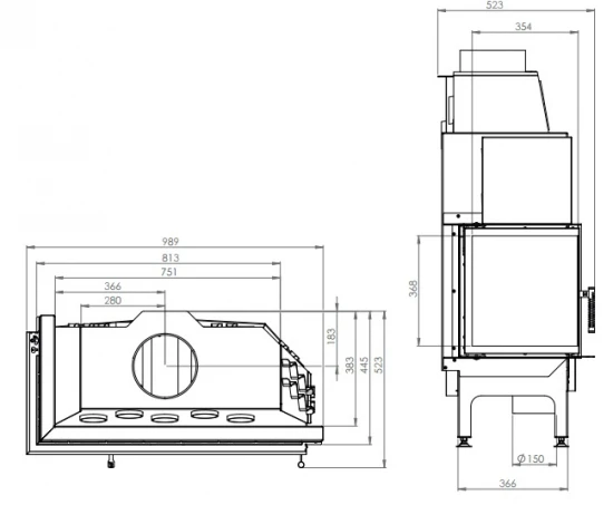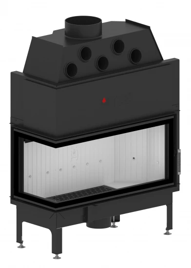 – Kaminkörper (zusätzlich verstärkt mit Rippen) und Kaminfront aus massivem Kesselstahl
