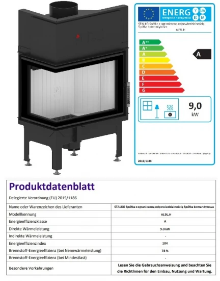Dieser robuste Kamineinsatz erfüllt auf Grund seiner zukunftsweisenden Konstruktion die erforderlichen BIMSCHV-Emissionswerte für Deutschland (Stufe II). Der Kamin besitzt eine selbstschließende Tür (Bauart 1) und ist somit für die Mehrfachbelegung am Schornstein zugelassen.