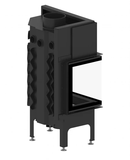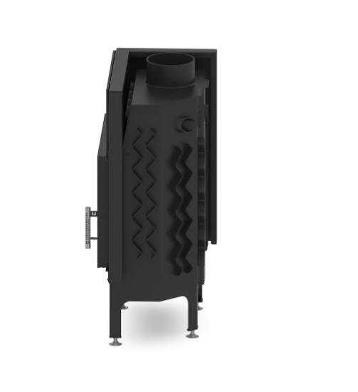 – Kaminkörper (zusätzlich verstärkt mit Rippen) und Kaminfront aus massivem Kesselstahl