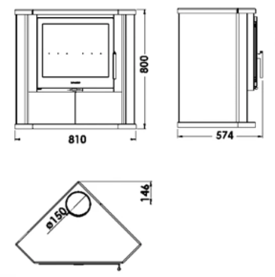 – Rauchrohranschluss: Ø 150 mm (nur oben möglich)