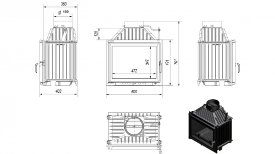 – Rauchrohranschluss: Ø 150 mm