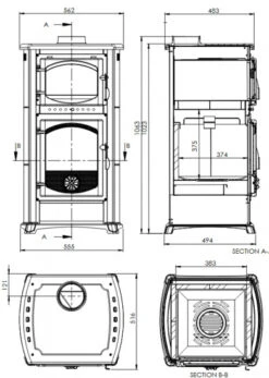 – Ofen aus massivem, dickem Gusseisen (165kg schwer!)