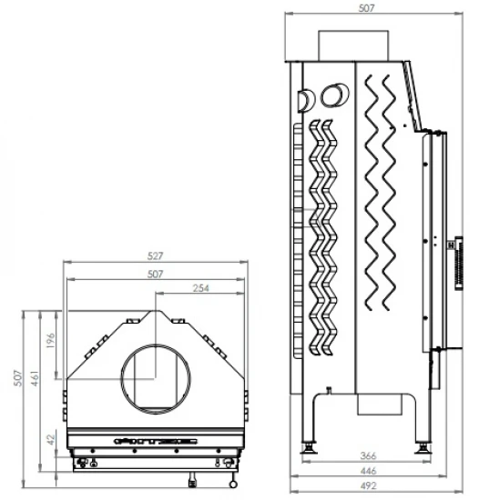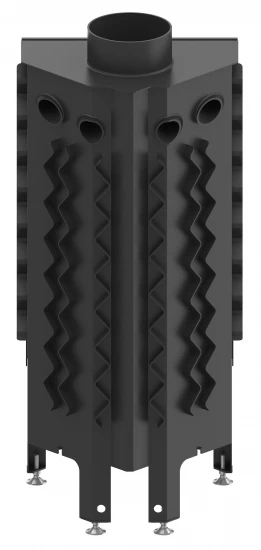 – Kaminkörper (zusätzlich verstärkt mit Rippen) und Kaminfront aus massivem Kesselstahl