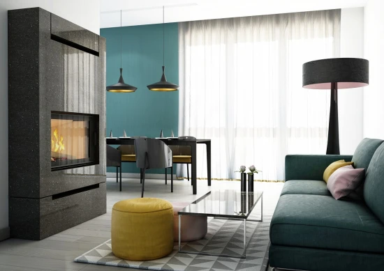 Der große Brennraum des Nadia ist mit Acumotte ausgekleidet und kann Holzscheite bis 40 cm fassen. Durch die helle Farbe der Brennraumauskleidung sowie die sechseckige Form der Brennkammer wird zusätzliche optische Tiefe erzeugt. Diese funktionale Bauweise sorgt für Langlebigkeit und damit ungetrübter Freude am Flammenspiel.