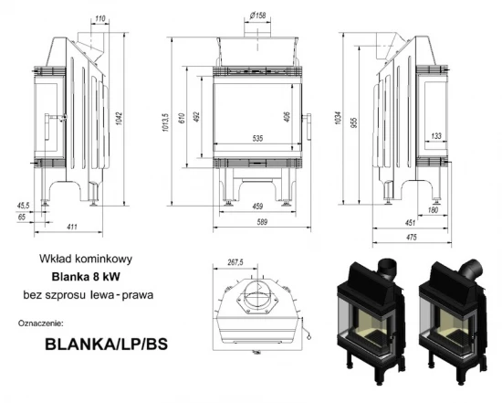 Kamineinsatz Kratki BLANKA/LP/BS mit 3 Scheiben – 8 kW