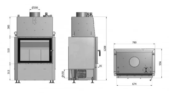 – Rauchrohranschluss: Ø 200 mm