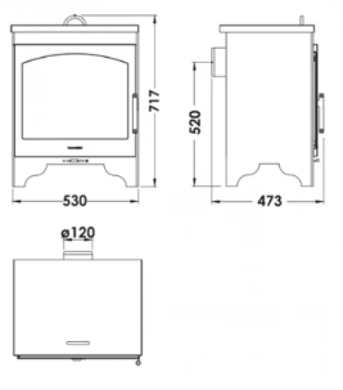 – Rauchrohranschluss: Ø 120 mm (nur hinten möglich)