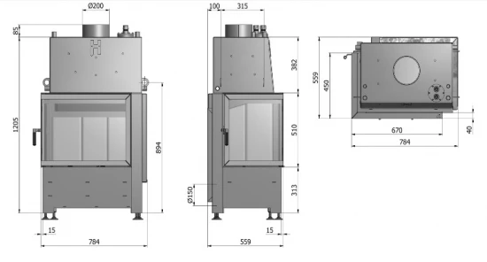 – Rauchrohranschluss: Ø 200 mm