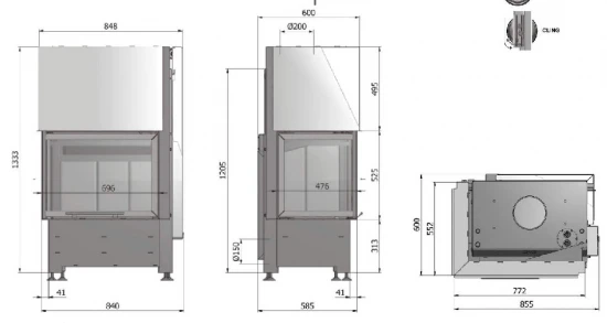 – Rauchrohranschluss: Ø 200 mm