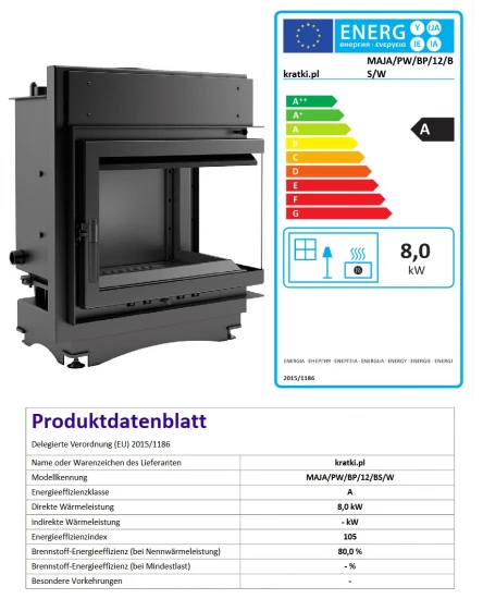 Wasserführender Kamineinsatz Kratki MAJA/PW/BP/12/BS/W mit Seitenglas rechts