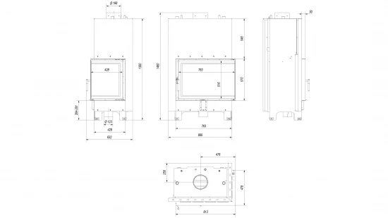 – Kaminkörper und Kaminfront aus massivem Stahl