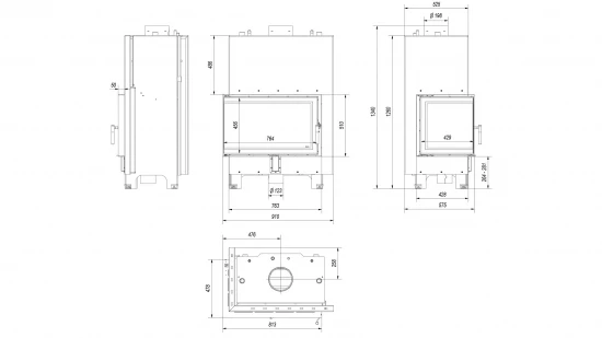 – Kaminkörper und Kaminfront aus massivem Stahl