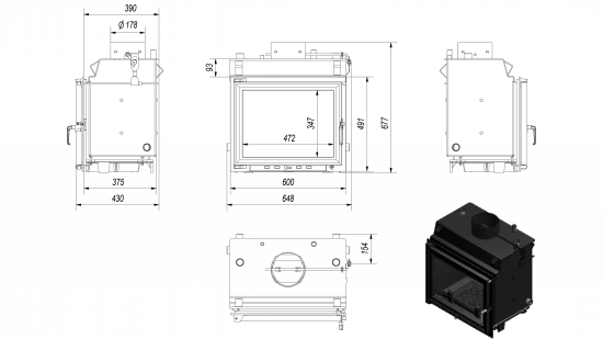 – Kaminkörper und Kaminfront aus massivem Stahl